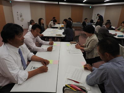 8月9日(金)、市役所において、幼児教育と小学校教育の連携研修会を行いました。第一こども園、関柴小学校による幼小連携の実践発表のあと、学区ごとに、幼小連携の更なる充実に向けて、グループ協議を行いました。参加者は、今年度に実践できる幼小連携のあり方について、充実した意見交換を行いました。