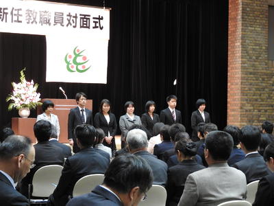 4月1日(月)、今年度喜多方市内の小中学校に新採用として赴任した18名の先生方に、教育長が講話を行いました。教育長からは、森信三のことば「教育は、流水に文字を書くような果てないなりわいである。だが、それは岩壁に刻むような真剣さで取り組まねばならぬ。」を紹介され、教員としての心構えについて講話をいただきました。早く喜多方の土地に慣れ、情熱を持って児童生徒の教育に全力を尽くしてください。