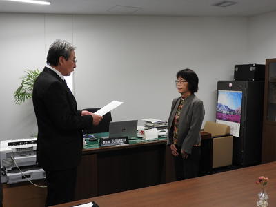 4月4日(木)に、喜多方市委嘱スクールソーシャルワーカー(SSW)、スクールカウンセラー(SC)、特別支援教育アドバイザーへの委嘱状交付式を教育長室で行いました。なお、今年度も特別支援教育アドバイザーを喜多方市教育委員会に配置することで、特別な支援を要する幼児、児童生徒の困り感を解決するとともに、特別支援教育の充実を図り、幼小連携、小中連携を一層充実させて参ります。