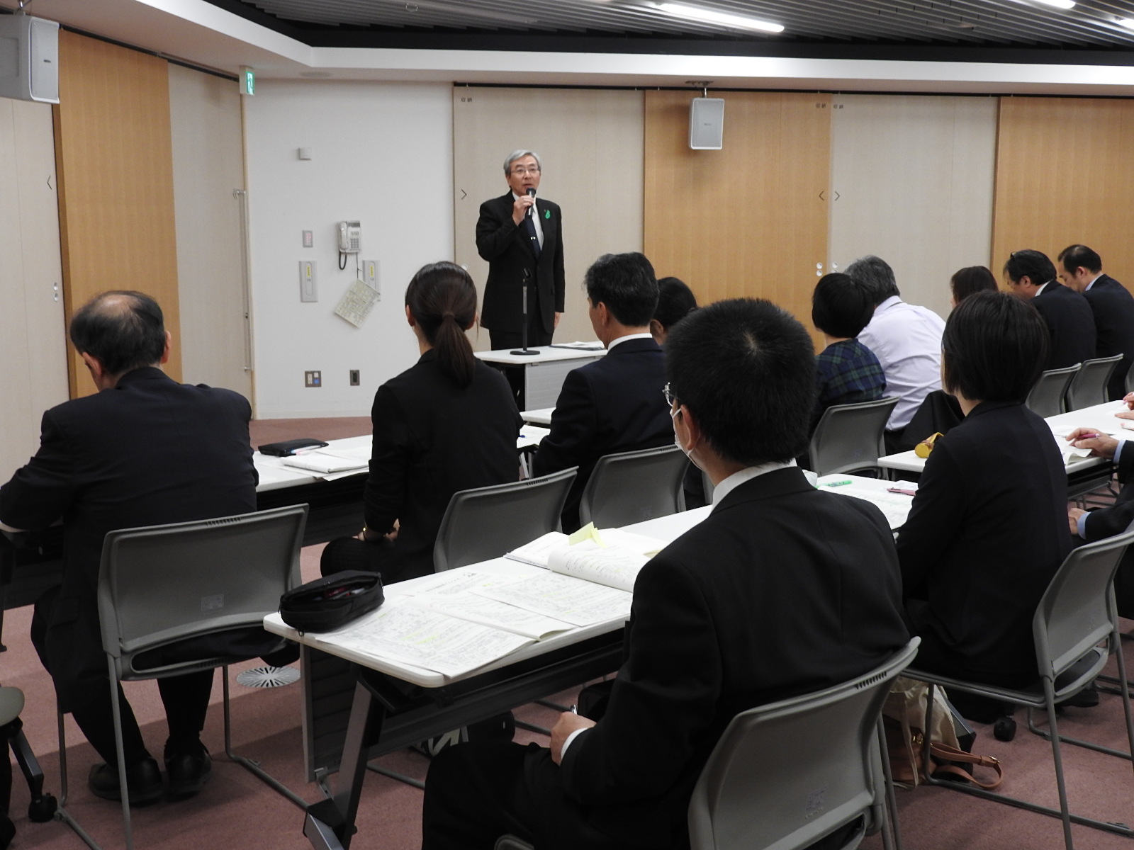 5月31日(木)に、「小中学校初任者研修 地区別研修B 一般研修」を市役所で行いました。今年度、新採用で喜多方に赴任した9名の先生方が、教員としての基本的な心構えや基本的な事項についての理解を深めました。
