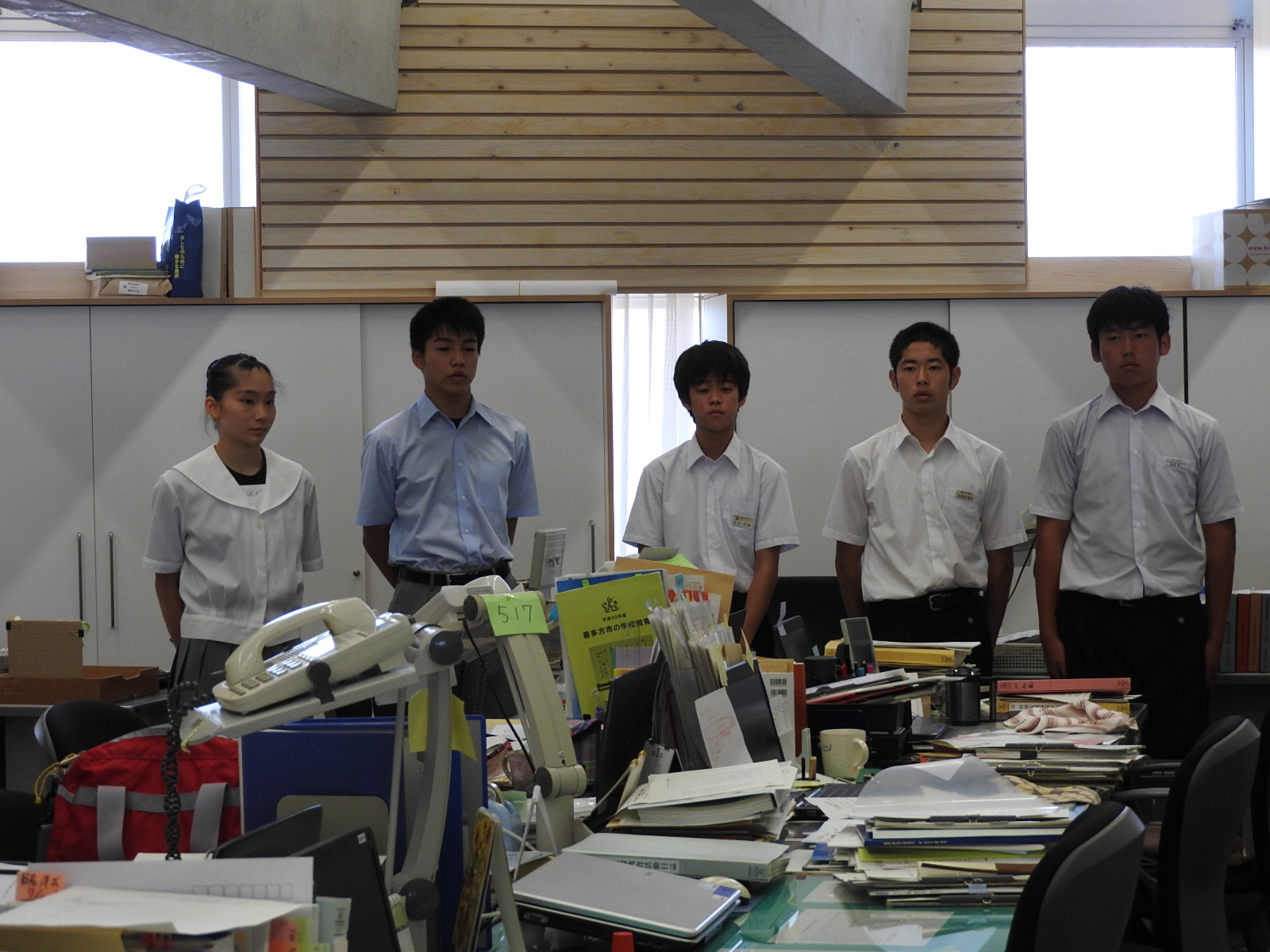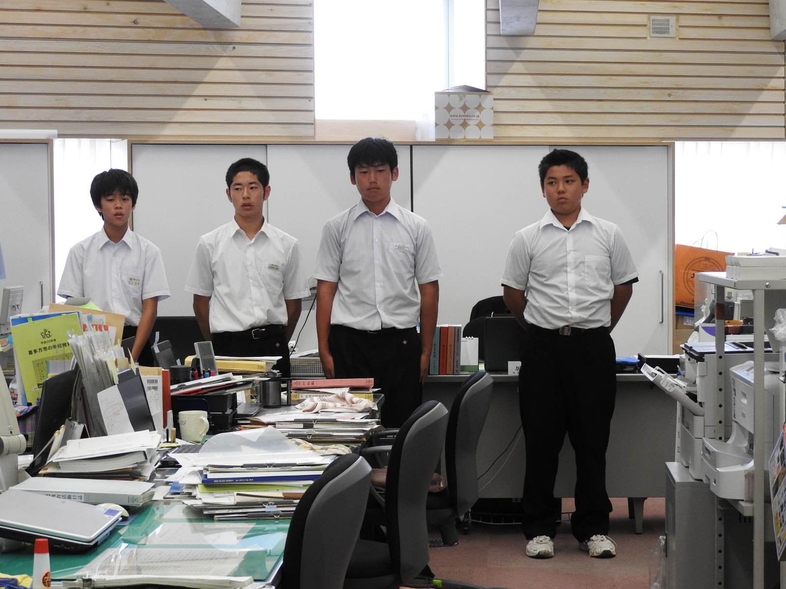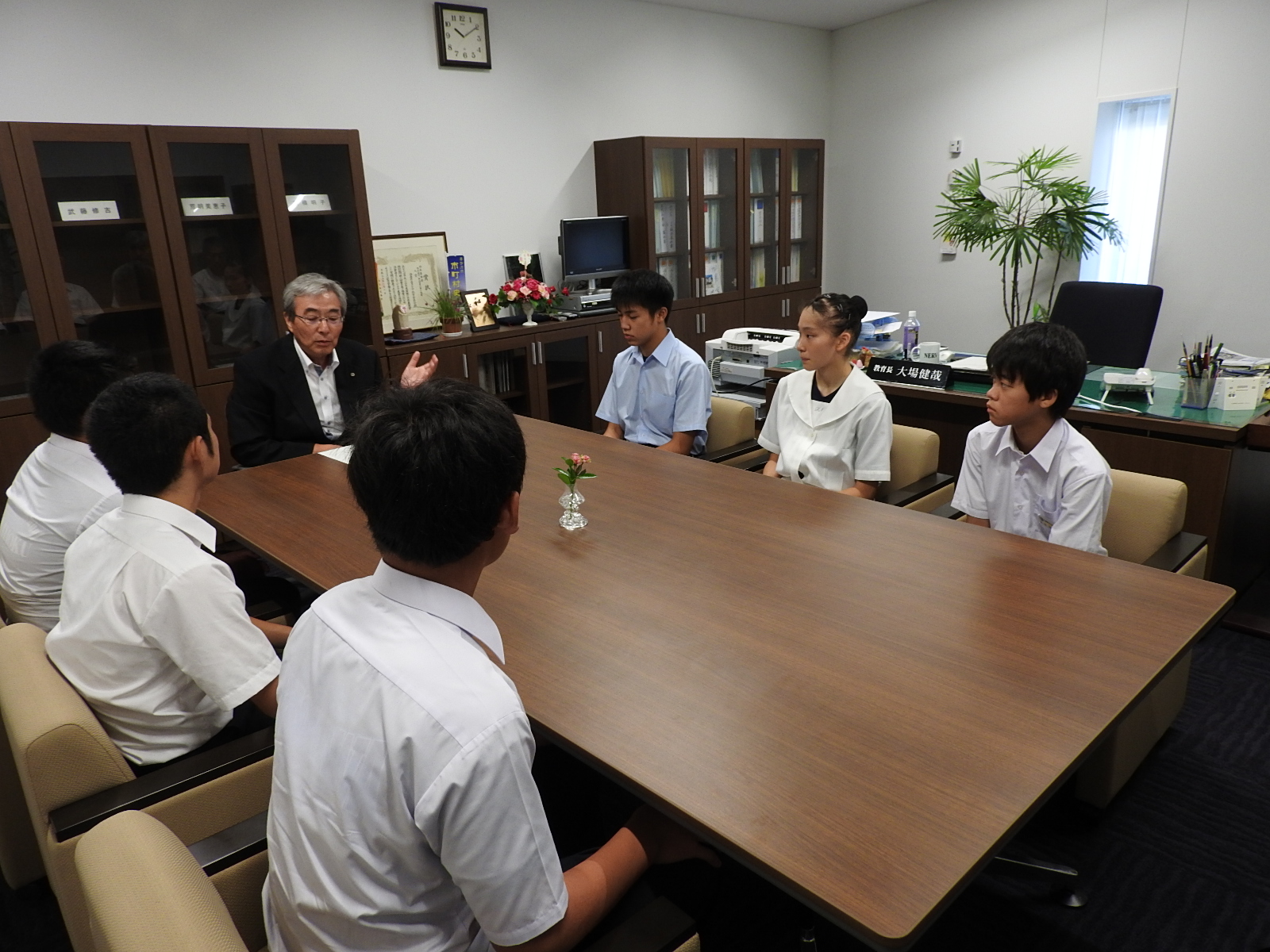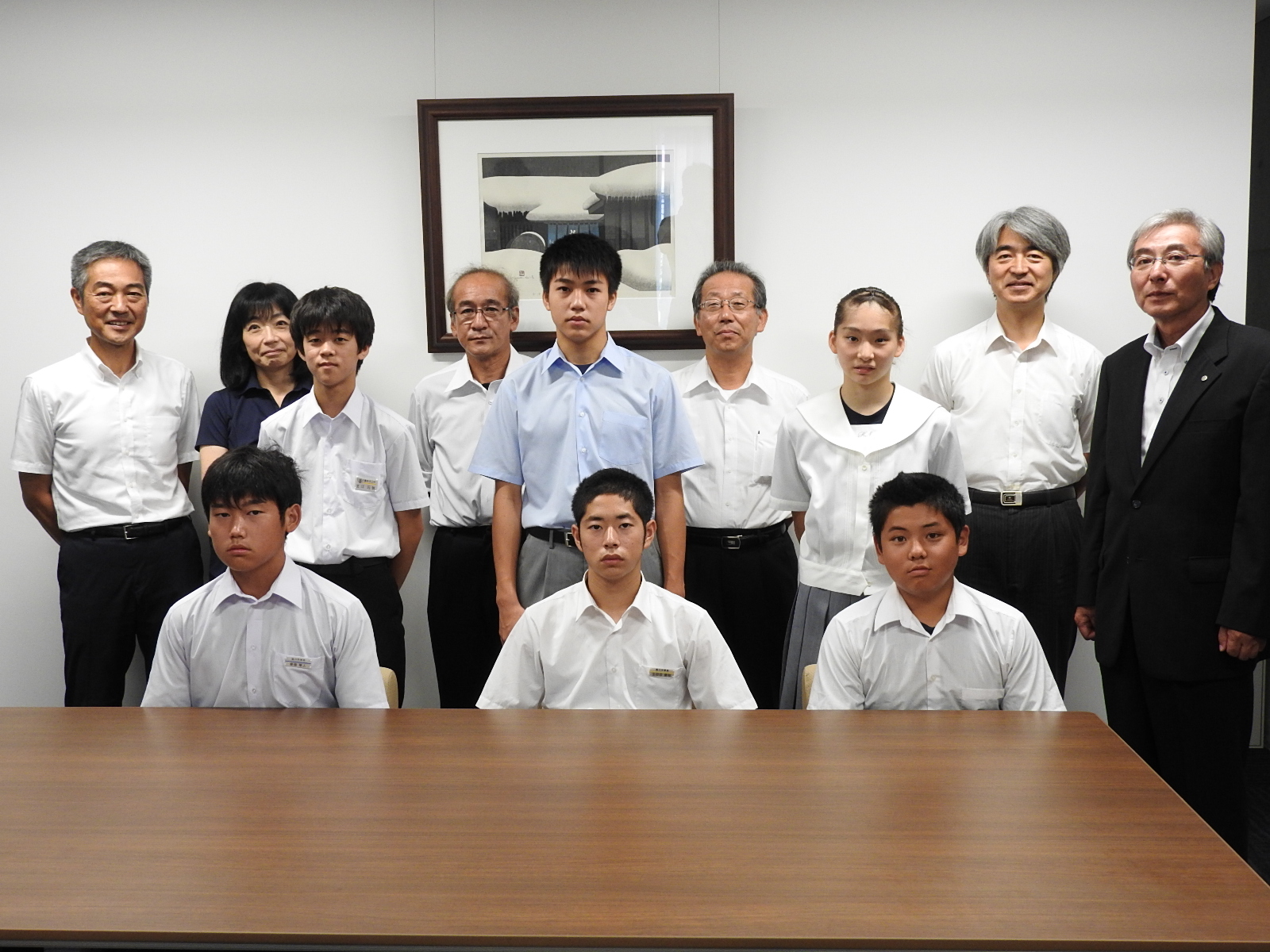 7月31日(火)に、福島県中体連で上位入賞し、東北大会の出場権を獲得した生徒が教育長を表敬訪問しました。東北大会への出場権を得たのは、喜多方二中 田中君(新体操)、加藤さん(新体操)、喜多方三中 生江君(卓球)、会北中学校 園木君(相撲)、塩川中学校 生田目君(新体操)、東條君(相撲)の6名です。東北大会での活躍を期待しています。