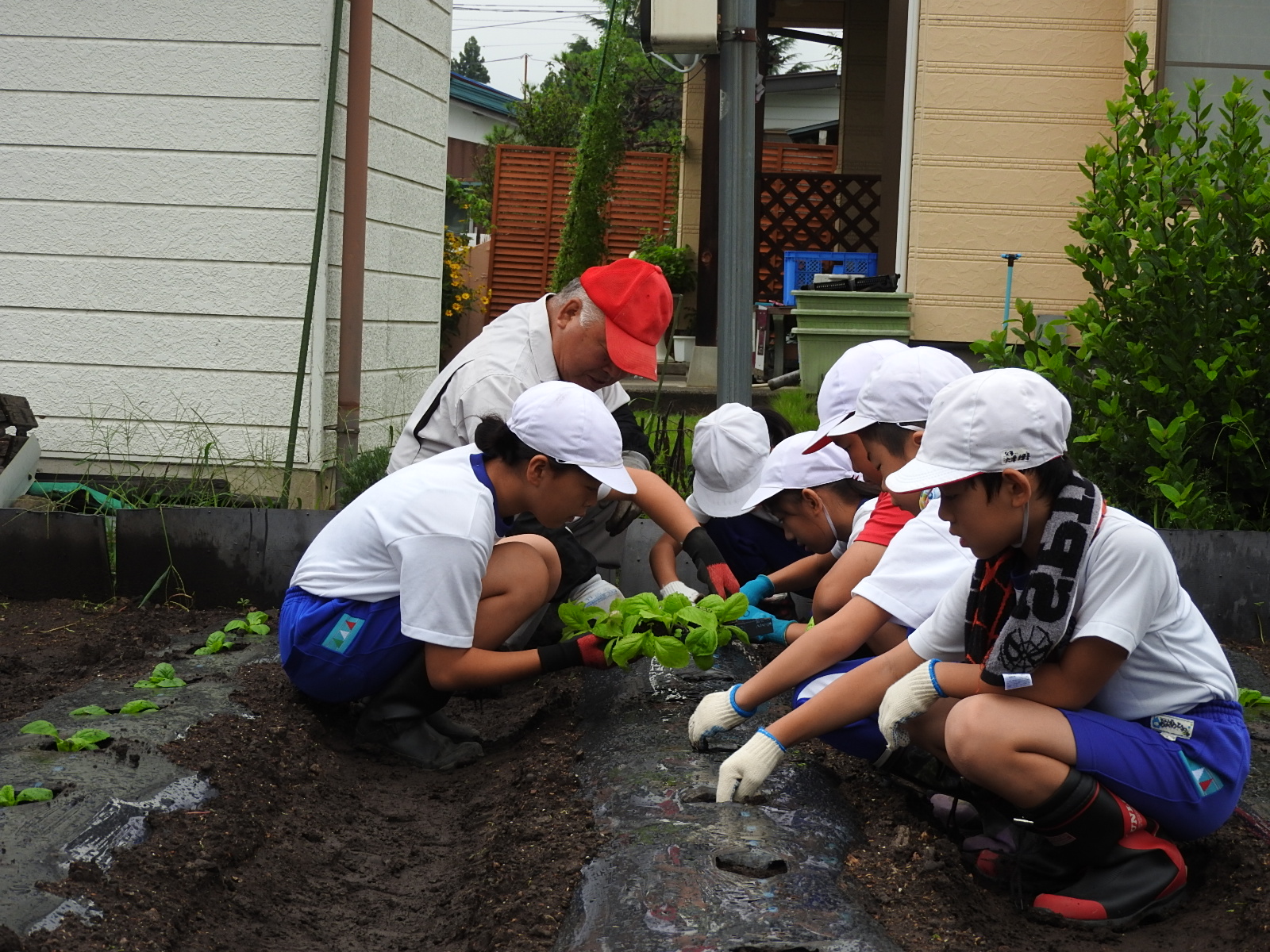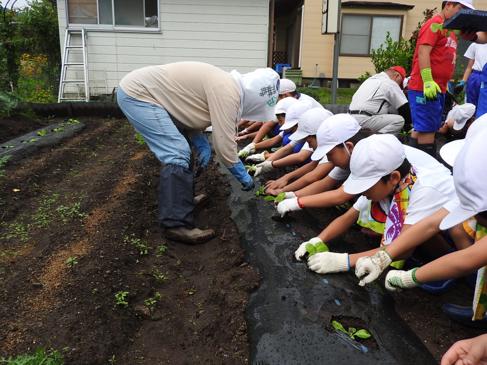 8月31日(金)は第三小学校で白菜の苗植えと大根の種まきをしました。支援員さんに教えて頂きながら丁寧に作業していました。