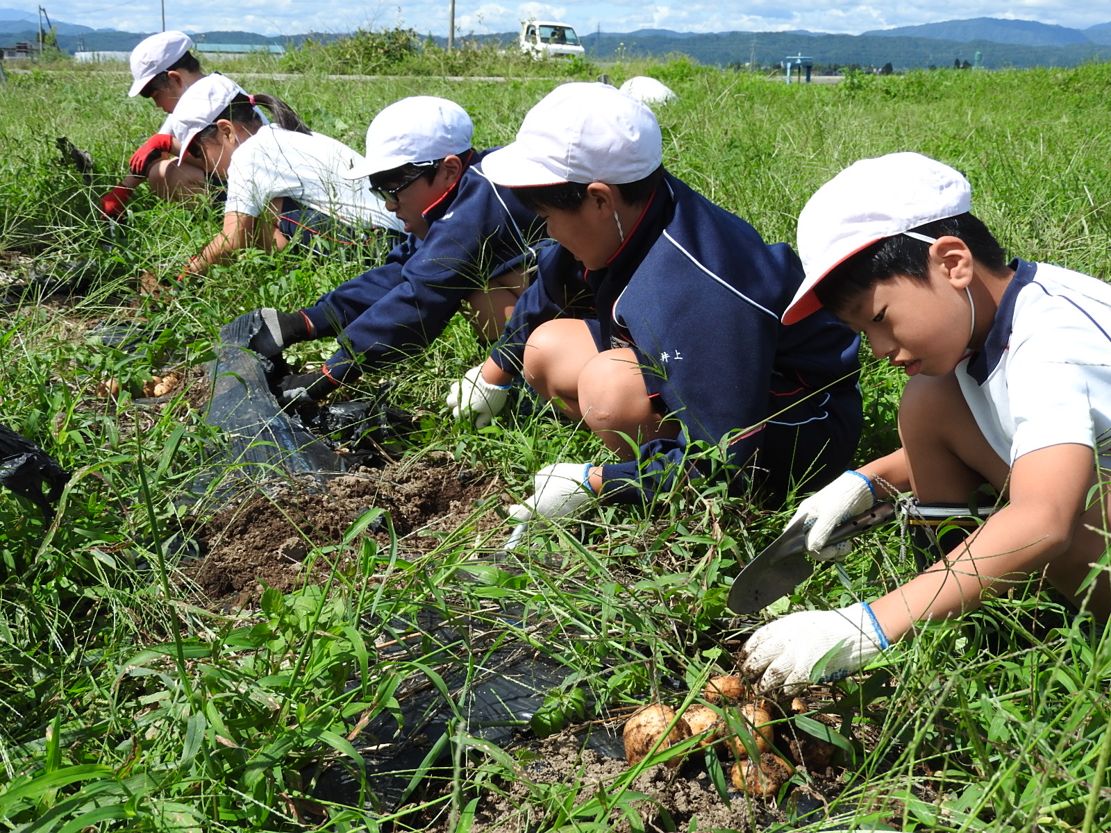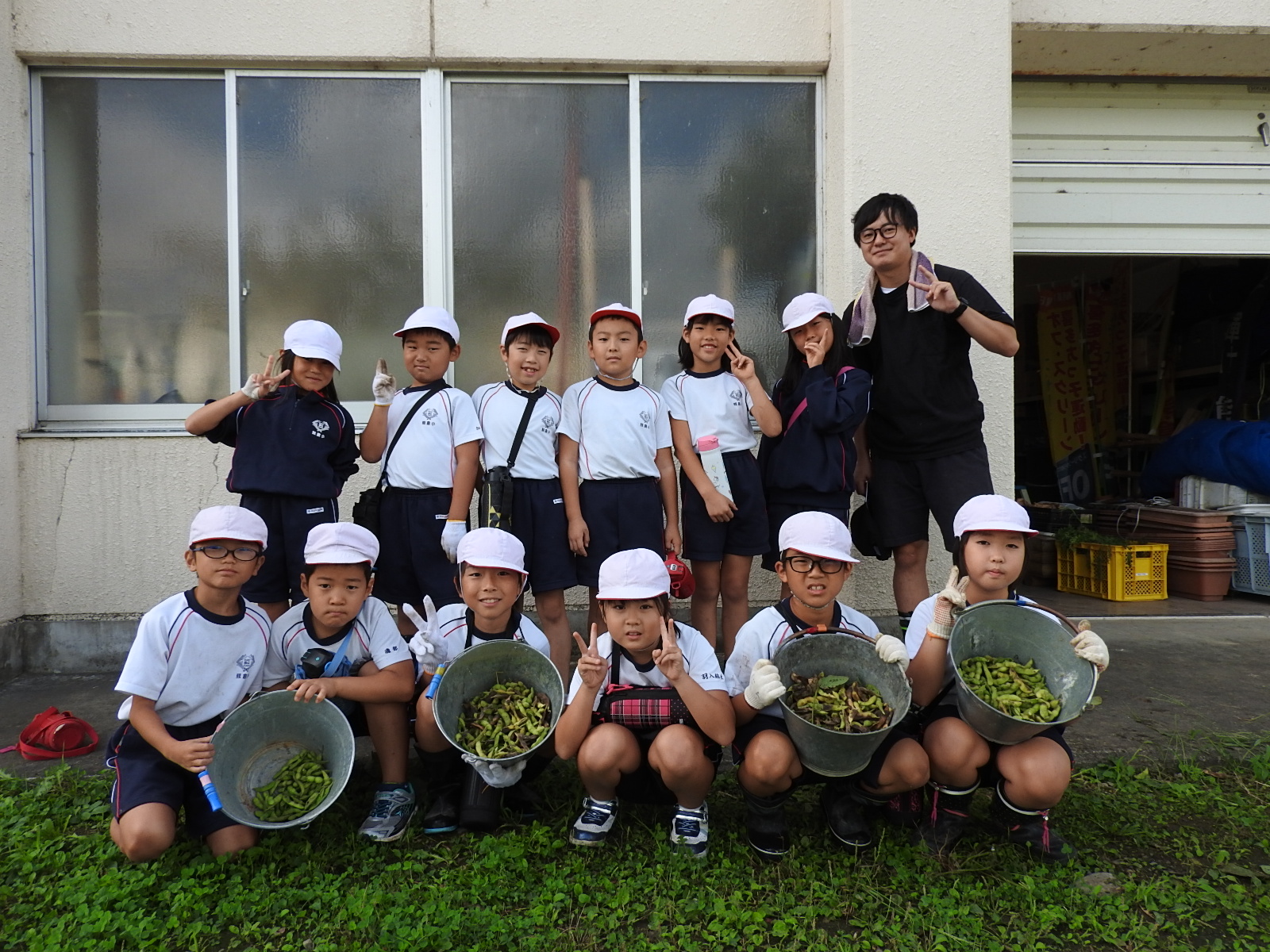 9月11日(火)は熊倉小学校で枝豆とじゃがいもの収穫を行いました。じゃがいもは大小様々でしたが、子どもたちは大喜びで芋を掘り起こしていました。