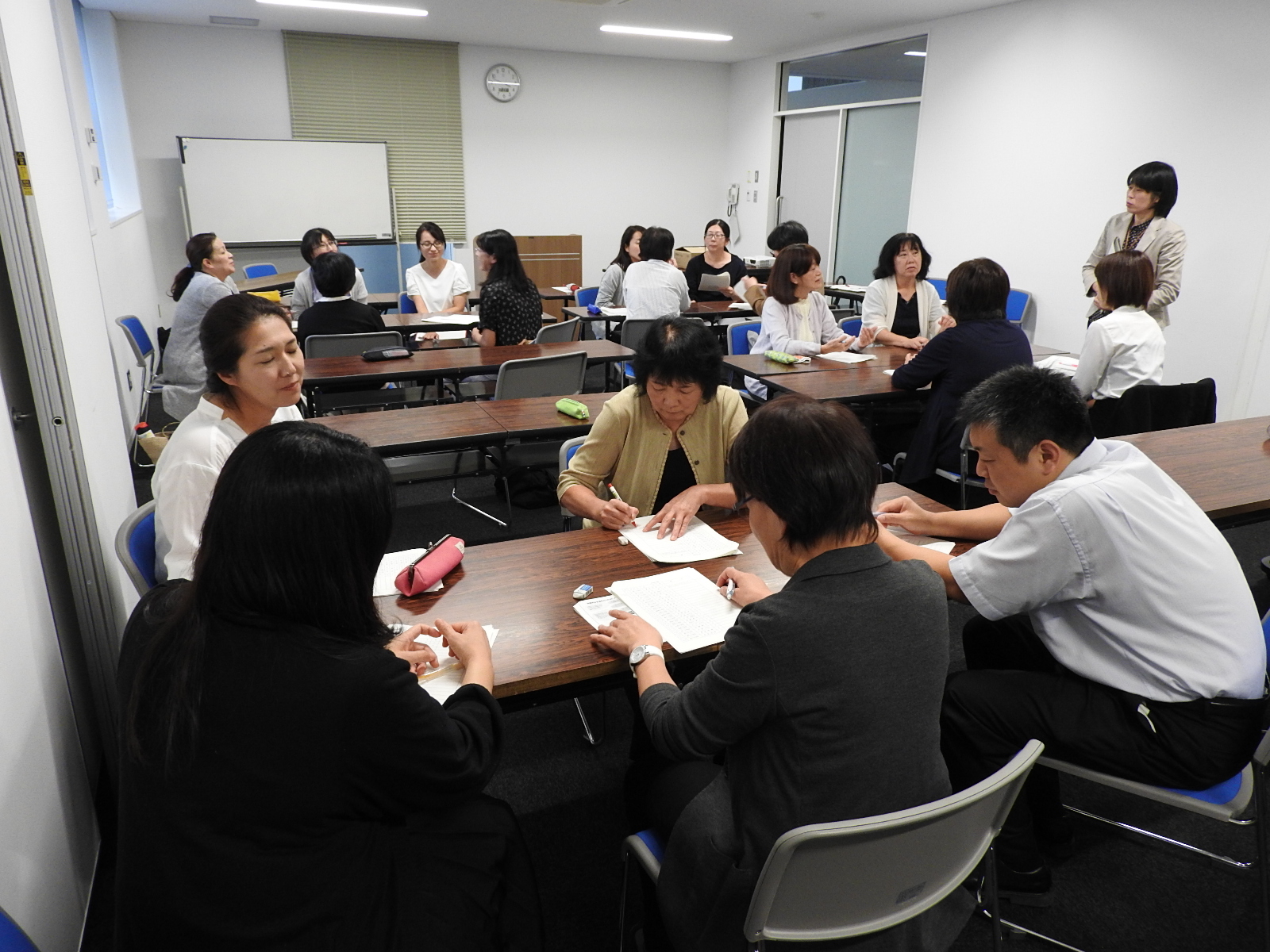 9月21日(金)に、第2回学校生活支援員研修会を実施しました。午前中はこども園に勤務する支援員の方々を対象に、第四こども園で実施しました。午後は小・中学校に勤務する支援員の方々を対象に、喜多方市役所で実施しました。それぞれの会場で、支援員の方々で情報交換を行い、児童生徒の個に応じた支援のあり方について情報を共有することができました。