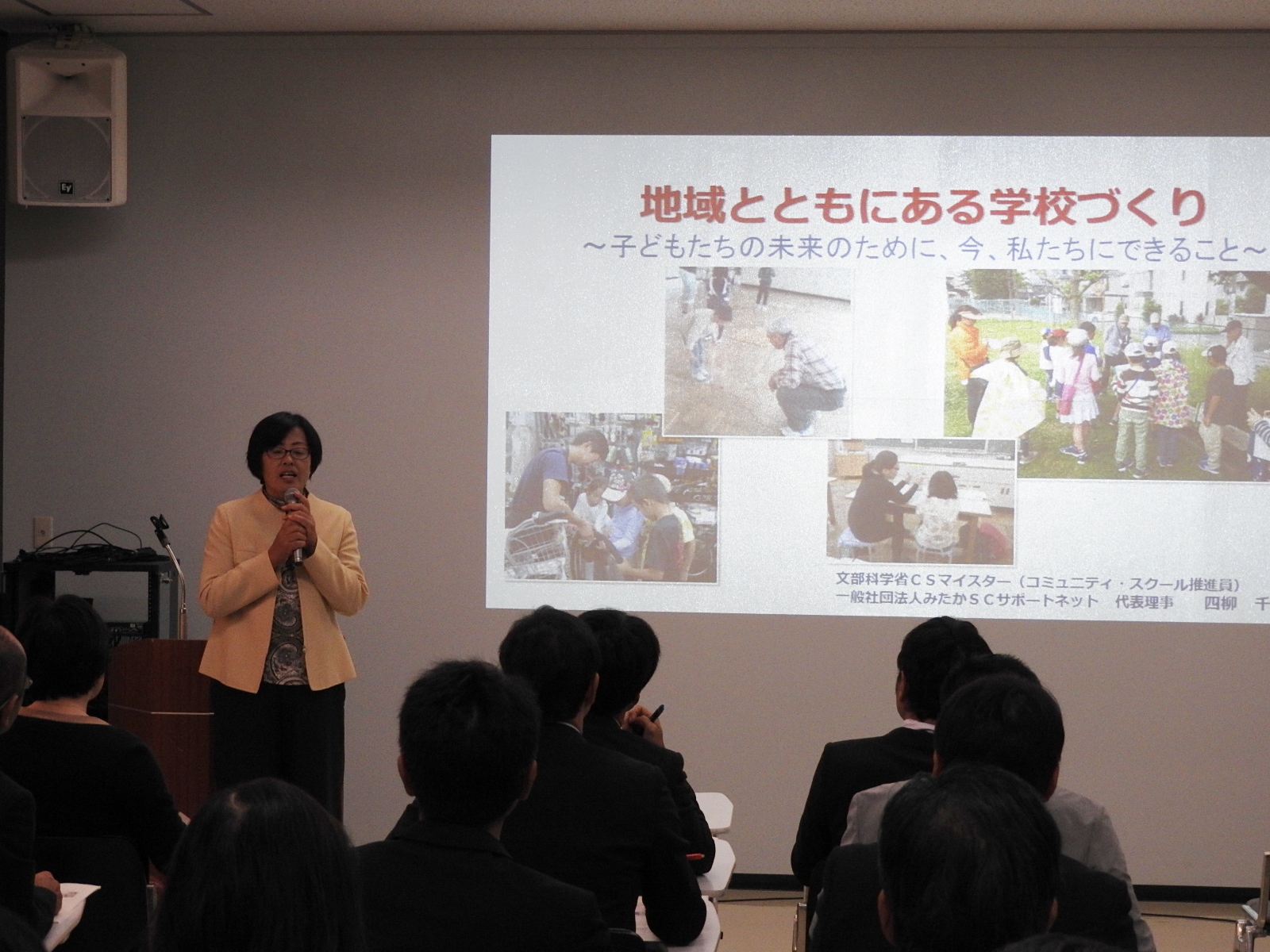 10月24日、喜多方プラザにおいてコミュニティ・スクール講演会を開催しました。講師に、文部科学省コミュニティ・スクール推進員の四柳千夏子先生をお招きしました。
