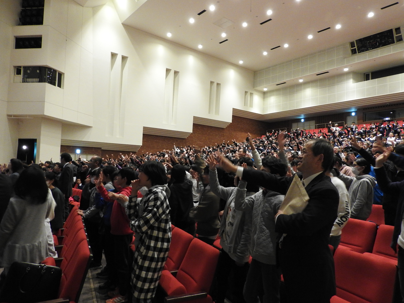 進行は、各中学校の代表生徒。教授との楽しいやりとりで、会場を盛り上げてくれました。