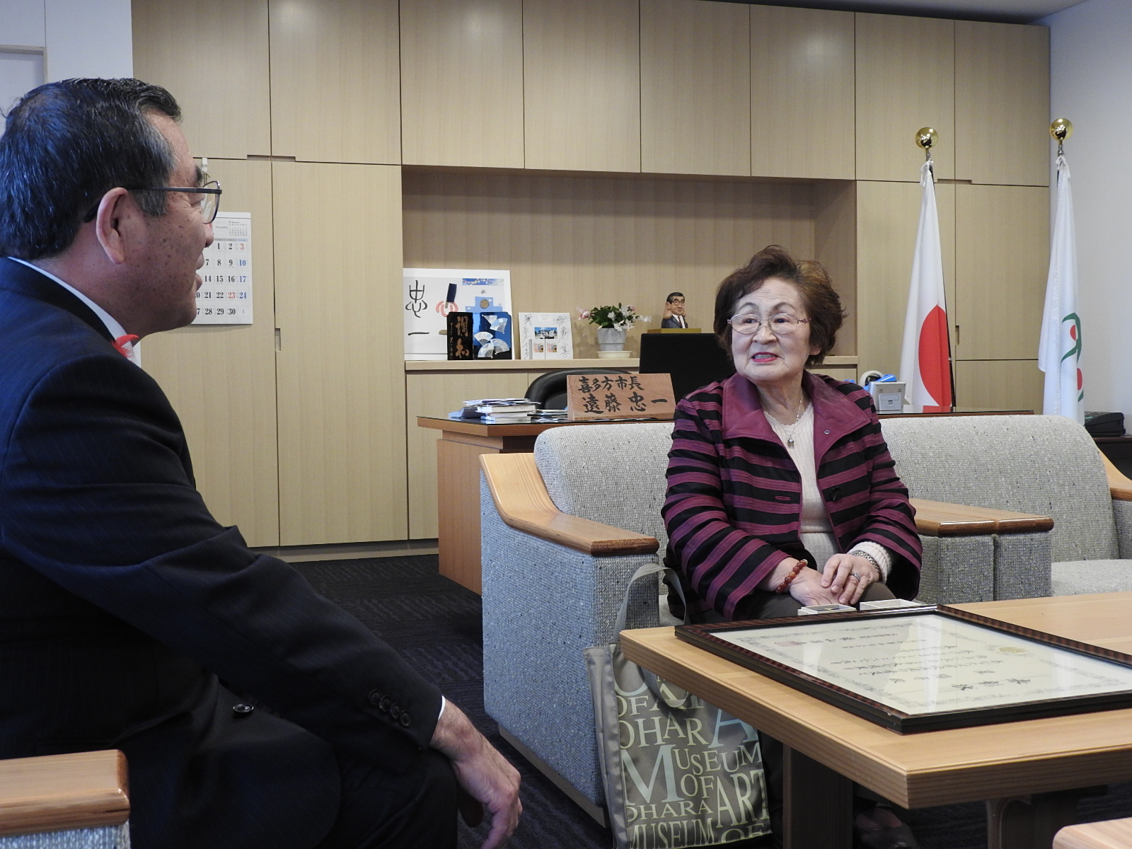 平成30年度学校保健文部科学大臣表彰を受賞された薬剤師の星陽子さんが、11月6日市長に受賞の報告においでになりました。