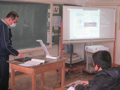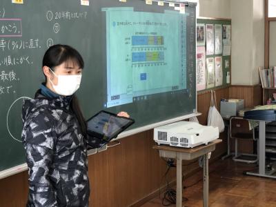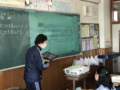 喜多方市では、児童生徒一人一台のタブレット、教師用タブレット、各教室へのプロジェクターの設置等を進め、ICT機器を活用した授業の充実に取り組んでいます。