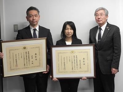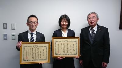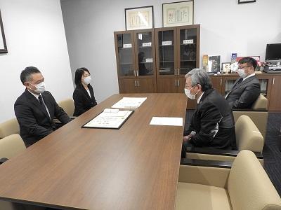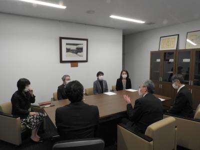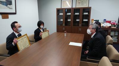 令和3年3月11日(木)、令和2年度「文部科学大臣優秀教員表彰」を受賞した第一小学校の伊藤先生と松山小学校の岩本先生が、受賞報告のために教育長室においでになりました。
