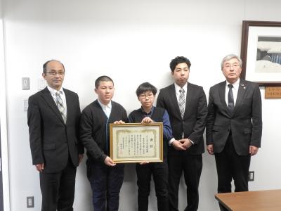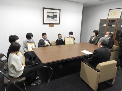 3月11日(木)に、第一小学校の杉原校長先生、大金先生と、体育委員の五十嵐さん、中瀬さんの4名が、ふくしまっ子元気大賞の受賞報告に教育委員会を訪問しました。