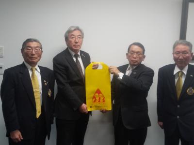 3月25日(木)、あいづ塩川湯川ライオンズクラブ会長 小島様、幹事 小林様、会計 高羽様が、堂島小学校、塩川小学校、姥堂小学校、駒形小学校の新入学生用のランドセルカバー贈呈のため、市役所においでになりました。