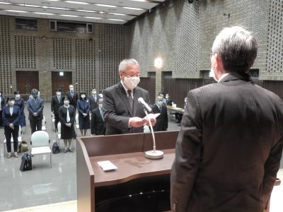 3月29日(月)、喜多方プラザにおいて、令和2年度喜多方市教職員退職者離任式を行いました。