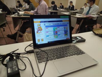 研修会では、レノボジャパン様を講師として参加(オンライン)していただき「みんなでプログラミング」というソフトの活用について説明がありました。児童にとってはレベルに応じた課題が選べるため、意欲的に取り組むことができる学習となることでしょう。