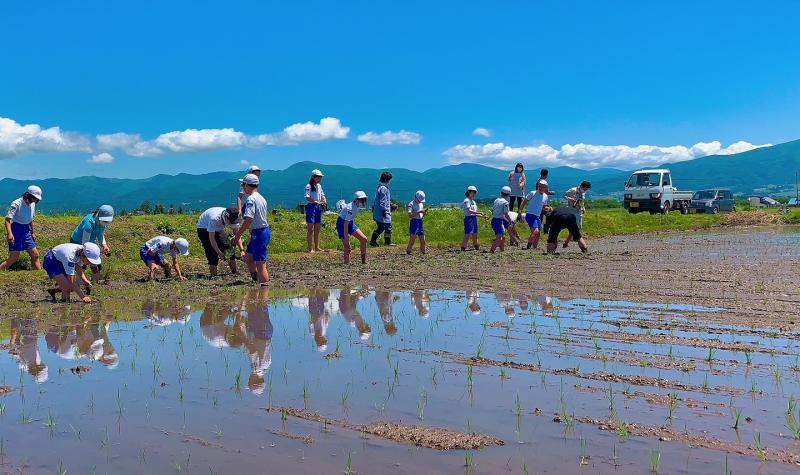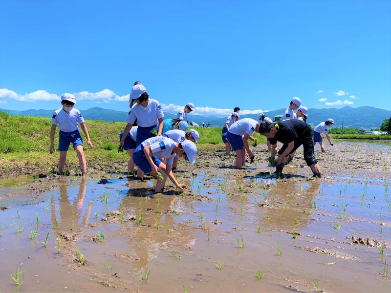 昨年も田植えを行った6年生は慣れた手つきでスムーズに苗を植えていました。5年生も農業科支援員さんに