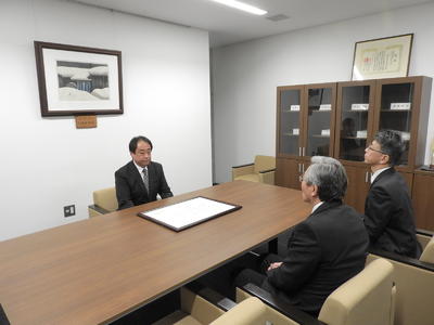 9月15日(火)、「みどりの奨励賞(全国緑の少年団連盟会長賞)」を受賞した喜多方市立第一小学校緑の少年団委員長の大竹さん、副委員長の藤田さんが、教育長への受賞報告のため教育長室を訪れました。