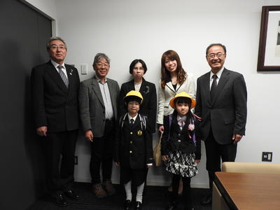 7月8日(水)に、第一小学校の校長先生、児童代表2名、担当の先生が、令和2年度福島県学校歯科保健優良校表彰(第63回よい歯の学校表彰)において「特別表彰」および最高賞の「最優秀賞」受賞を教育長へ報告するため、市役所を訪れました。