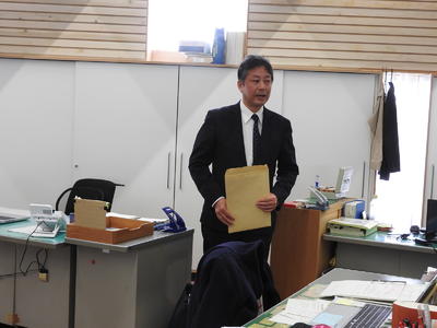 報告会では、大竹さんの「伝統ある緑の少年団の活動を大切にしていきたい」との発言に、教育長から、「この素晴らしい伝統が、下級生に引き継がれるよう頑張って下さい。」との激励の言葉がありました。報告会には、杉原校長先生、緑の少年団担当の山内先生が同席されました。