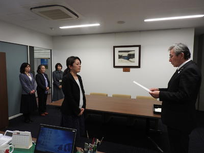 8月31日(月)に、喜多方市役所教育長室において、若菜ミエ子さんと内藤陽冬美さんに、喜多方フリースクール指導員の委任状交付を行いました。