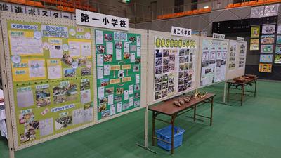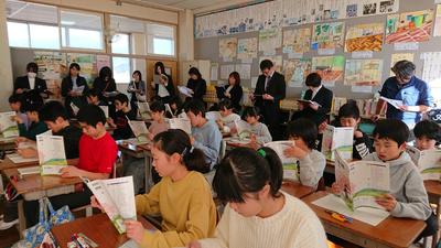 第一小学校は、地元企業と連携し、オリジナルの豆菓子とせんべいを開発しました。高郷小学校は、高郷町の自然、文化、食について調査研究し、パンフレットにまとめて修学旅行などで配付しました。