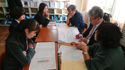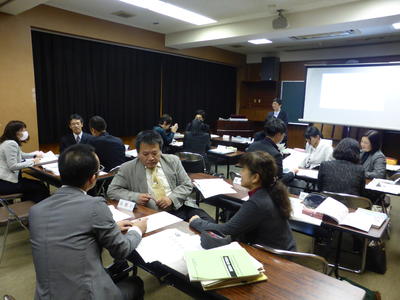 1月16日(木)、市役所で第5回喜多方市学校教育指導委員会を行いました。今回は、小学校5年生と中学校2年生用の春休み中の課題と、幼小中連携プラン「ここまで育てよう!!喜多方の子どもたち」の中学校卒業時までに育てたい姿についての検討を行いました。各グループに分かれて作成している問題は、今年度の全国学力学習状況調査で課題の見られた、いわゆる「活用力」の問題です。先生方が工夫して作成した問題を活用し、喜多方市の学力向上に取り組んでいきたいと思います。
