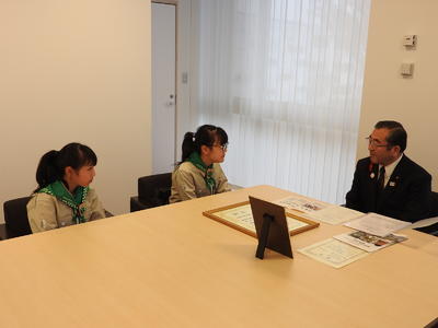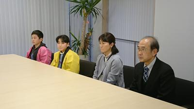 第一小学校と高郷小学校が、第1回ふくしまジュニアチェレンジの活動部門で入賞し、2月13日(木)に、両校の代表児童2名と校長先生、担当の先生が、教育長への受賞報告のために教育委員会においでになりました。
