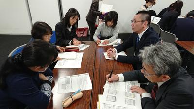 表彰式後の研修会では、特選を受賞した学校からの実践報告の後、グループごとに各校で実践された研究の成果と課題について協議しました。