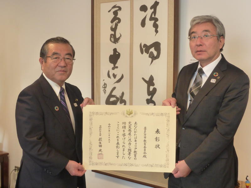 1月15日に、「第13回キャリア教育優良教育委員会 学校及びPTA団体等文部科学大臣表彰式」が行われ、本市教育委員会がキャリア教育優良教育委員会として文部科学大臣賞を受賞いたしました。