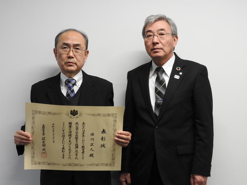 この表彰制度は、優れた成果を上げた教職員を表彰することを目的に、平成18年度から実施されているもので、今年度は、全国で825名が表彰されましたが、そのうちの1人として受賞されたものです。