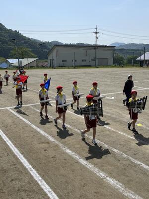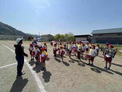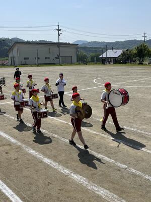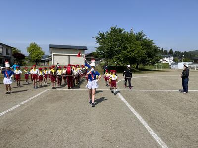 鼓笛全体練習では、本番と同じ衣装で練習しました。ベレー帽と黄色いバンダナを身に付け演奏する姿は、最高でした。もう少し演奏の練習をして、合わない箇所を合わせて本番に臨みます。
