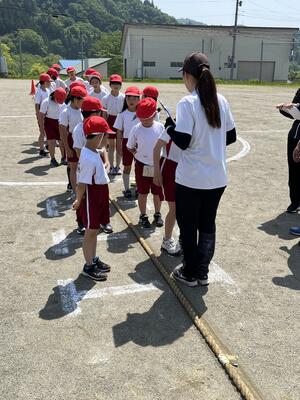 運動会全体練習では、綱引きと応援合戦の練習をしました。綱引きは4年ぶりのため、実施方法などみんな忘れてしまっていましたが、一つ一つ確認しながら練習しました。今日の練習では白組が勝ちましたが、本番ではどうなるか、お楽しみに!