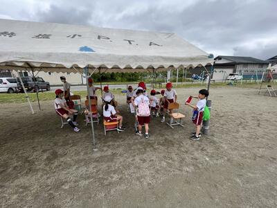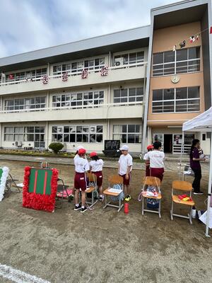 朝早くから保護者の方々の手伝いで、準備も終わり、子供達が出てきました。