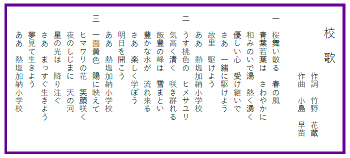 熱塩加納小学校校歌