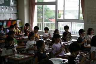 3年生が音楽でリコーダーの練習をしています。今日は,「ラ」と「シ」を吹いています。きれいな音は,姿勢や息の吹き込み方,正しい指使い・・・と様々がそろわないと出ません。先生の指示をよく聞いて,練習をすると,とっても美しい音が聞こえてきました。