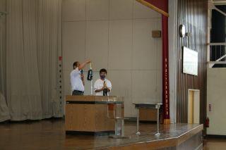 2020年7月7日 14時50分7月7日(火)。全校集会を行いました。校長先生からは学習中の姿勢について話がありました。人間の子どもの頭の重さは3~4kgあるそうです。その重い頭を支えるためには,背筋をきちんと伸ばす必要があり,背筋が伸びると集中力も増すそうです。集中力が増せば,学習もよくわかり,楽しくなると・・・良いことばかりです。姿勢を良くして勉強しましょう!