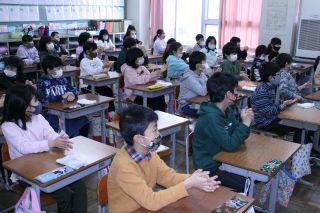 始業式はテレビ放送で行いました。各教室であっても,校長先生のお話を,姿勢良くしっかりと聞くことができていました。3学期にふさわしい態度でした。素晴らしいスタートを切ることができましたね。締めくくりの3学期!健康に気をつけて,みんなで頑張りましょう!