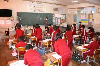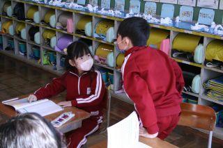 2021年1月21日 10時30分1年生は国語と算数の時間です。国語では2文字の言葉を2文字足して(たい→たいふう)変身させています。たくさんの言葉が発表されました。普段から読書に取り組んでいる成果ですね。算数では100までの数を読んだり,書いたり,数字の並びの規則性を見つけたりと楽しみながら学習しています。