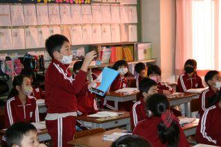 2021年1月21日 11時20分3年生の算数です。デジタル教科書を利用して学習しています。手作りの天秤で重さを量る学習です。どのようになるとどちらが重くなるのか,また同じになるのかを言葉でしっかりと説明しています。みんなが理解できるように,算数の用語等を使って上手に発表していました。