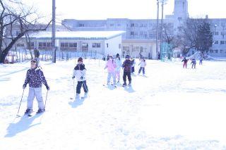 2021年1月21日 12時00分4年生は来週にスキー教室を控えています。体育の時間に練習です。まずは校庭を一周滑走,準備運動をしてから,なかよし山を滑り降ります。昨年度は雪不足のためスキーができなかったので1年ぶりのスキーですが,滑走する姿がとっても様になっています。流石です。