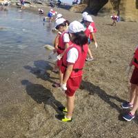 2019年6月6日 14時45分楽しみにしていた磯遊びが始まりました。さっそくかにやヤドカリを見つけました❗