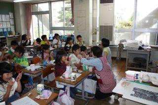 歯科衛生士の齋藤久美子先生のブラッシング指導を実施しています。今日は3年生で正しいブラッシングの仕方を教えていただきました。歯の汚れを染め出しし,正しい歯磨きの仕方で汚れを落としていきます。隅々まで磨くことができ,ぴかぴかの歯になりました。これからも,教えていただいたことを生かし,虫歯予防をしていきたいですね!齋藤先生,ありがとうございました!