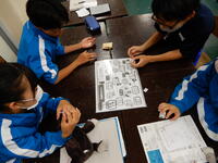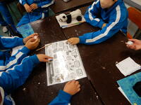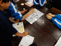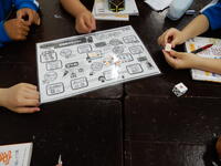 2024年5月30日 10時25分2年生の家庭科では既製品の表示について学びました。取り扱い表示をカルタにして、表示に慣れる活動をしました。その後、グループの中でルールを決め、消費者庁の「洗濯表示すごろく」を使い、楽しみながら表示の理解を深めました。