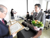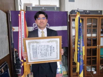 過日、耶麻中教研研究物審査結果、準特選(共同研究の部)に輝きました。喜多方市立小中学校長・教頭合同会議前に、改めて芳賀教育長より、表彰状が手交されました。一中でも研修主任として功労があった髙橋教諭に感謝を込めて、表彰状を授与しました。共同研究とは、皆さんの協力がなければ成立しません。教職員一人一人の研究に対する自覚と生徒に力を付けさせたいと願うことの実績が証明された瞬間です。(460)