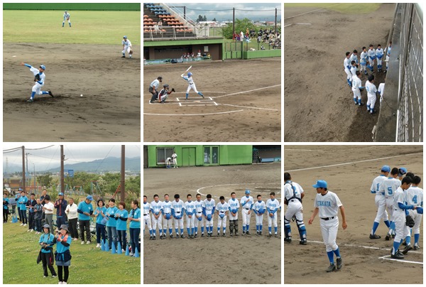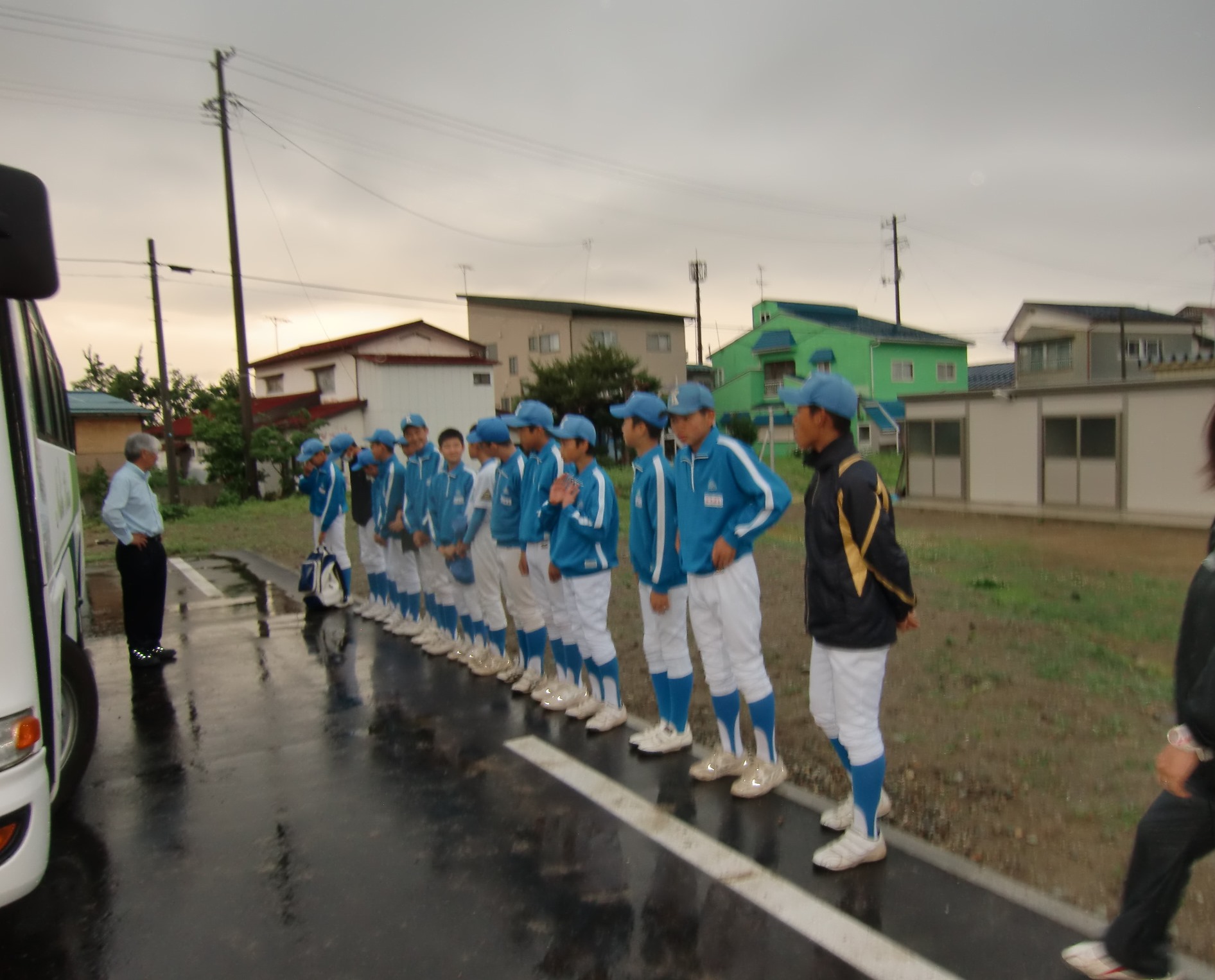 早朝6時、保護者のご協力により生徒たちが学校へ集合。誰一人遅れることなく、時間どおりに全員集合! バスの運転手さんが曰く、「時間どおりに全員が揃う中学校、たいしたもんだ。あいさつもしっかりできていい子ともたちですね」とお褒めの言葉がありました。 9:00ゲーム開始 会場:会津坂下町鶴沼野球場 対戦相手&坂下中 「完全燃焼!」決戦の火ぶたは切って落とされました。