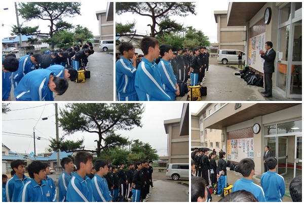 6時30分集合 バスケ部もサッカー部も 5分前には全員集合し、元気にあいさつ。「いって参ります。頑張ってきます!」両部活ともに、会場が会津総合運動公園内体育館・サッカー場です。試合時間及び対戦相手は前述です。「頑張れ → 顔晴れ」になるよう、そして「完全燃焼」の言葉をかけました。「ゲームを楽しむ・気持ちよくプレーしてほしい」 一中モットー ルールとマナーをいつも心に!