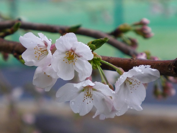 職員室前の桜が本日開花しました。 一中の標本木ですか? 雨にぬれてしまいました。 お隣の梅の木も桜に負けずと開花しています。 いよいよ春です! 明日は平成30年度 新たな体育館での一中入学式です。(512)