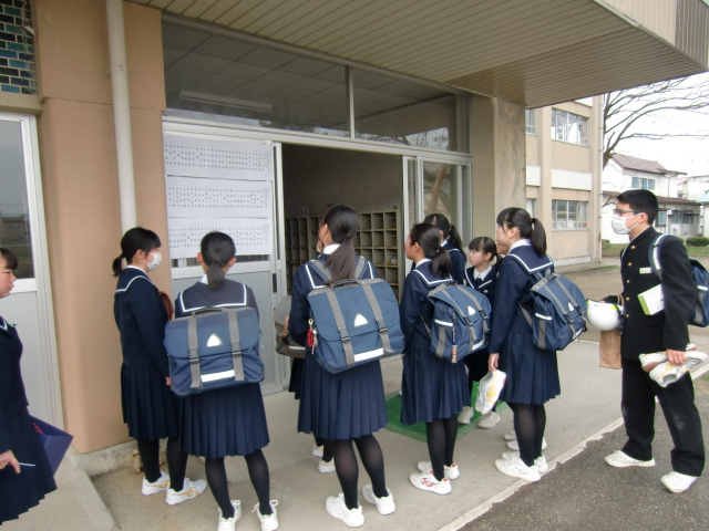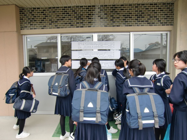 4月6日(金)平成30年度 着任職員披露・始業式・入学式が執り行われます。生徒たちが登校するや否や昇降口に掲示してある各学級の名簿に釘付け。 「やったぁ!」「えぇ~!」「よかったぁ~」「よし!」と掲示版を眺めながら一喜一憂していました。中学校では、学級が集団となり学習や生活を送ることになります。本校では、毎年組替えを実践し、新たな出会いを大切にしています。それぞれ学級で、個々のよさや可能性をさらに伸ばしてほしいと願っています。(515)