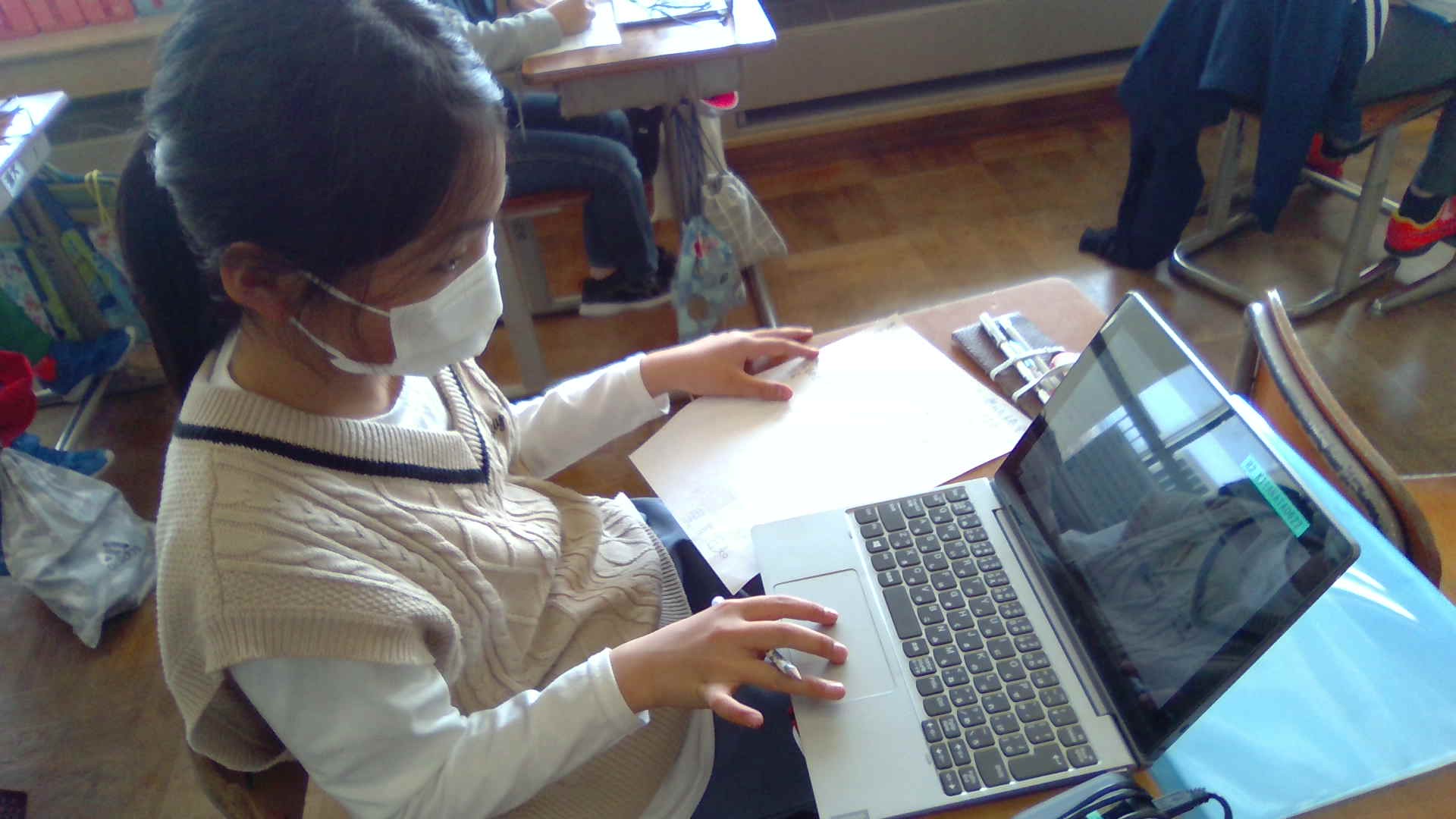 まずは,米作りについて,タブレットを活用して調べ学習です。