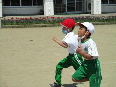 2年生は,体育の時間にリレー遊びを楽しみました。