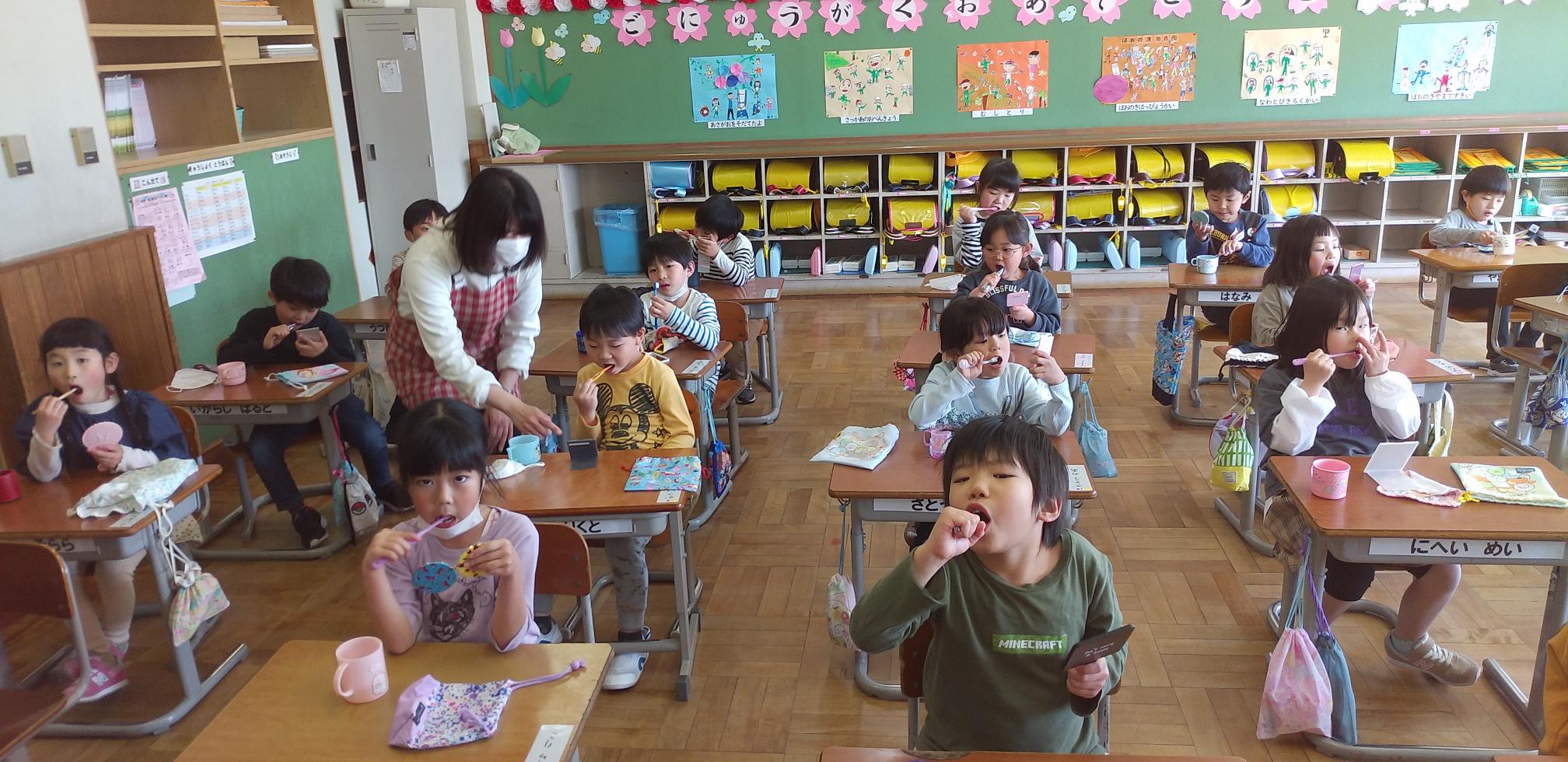 今日の給食のメニューには,納豆が出ました。おいしくいただいた後は,音楽に合わせて、いつもよりもしっかり歯みがきしました。