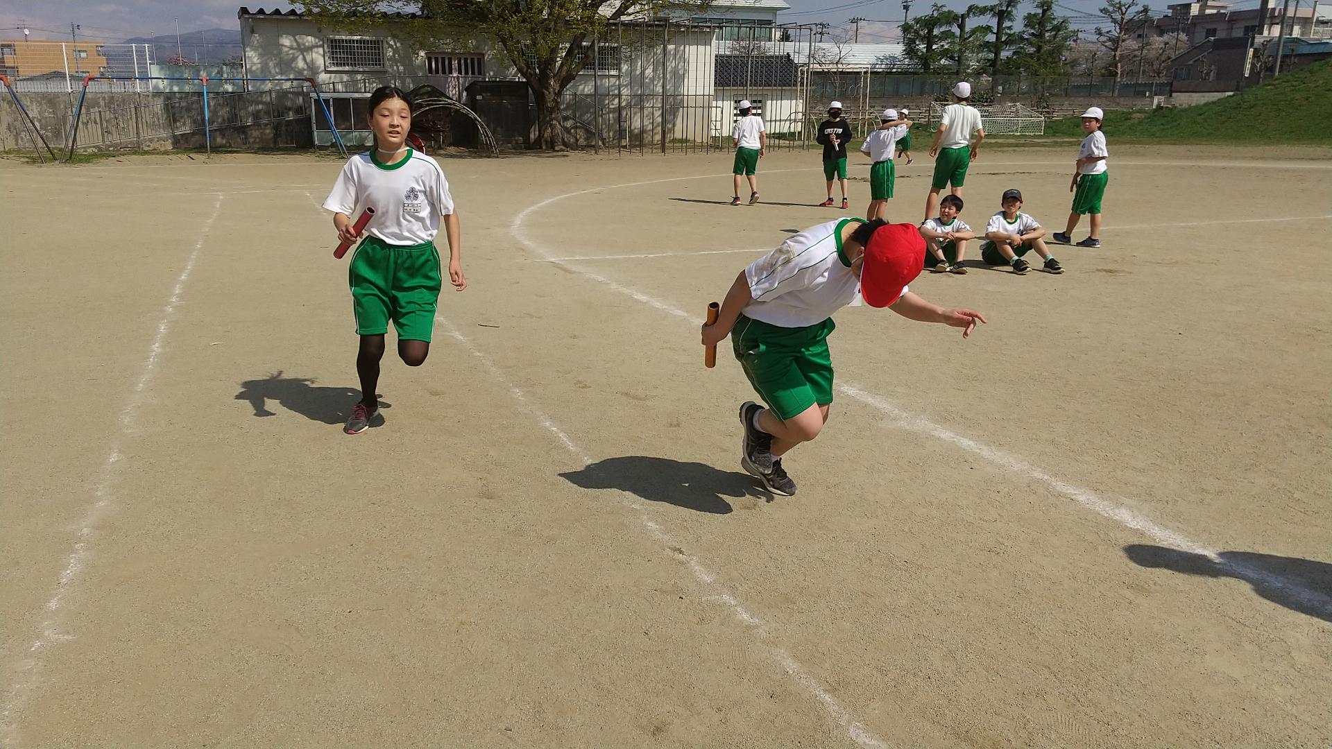 バトンパスの仕方に課題は残りますが、みんな全力で走りました。
